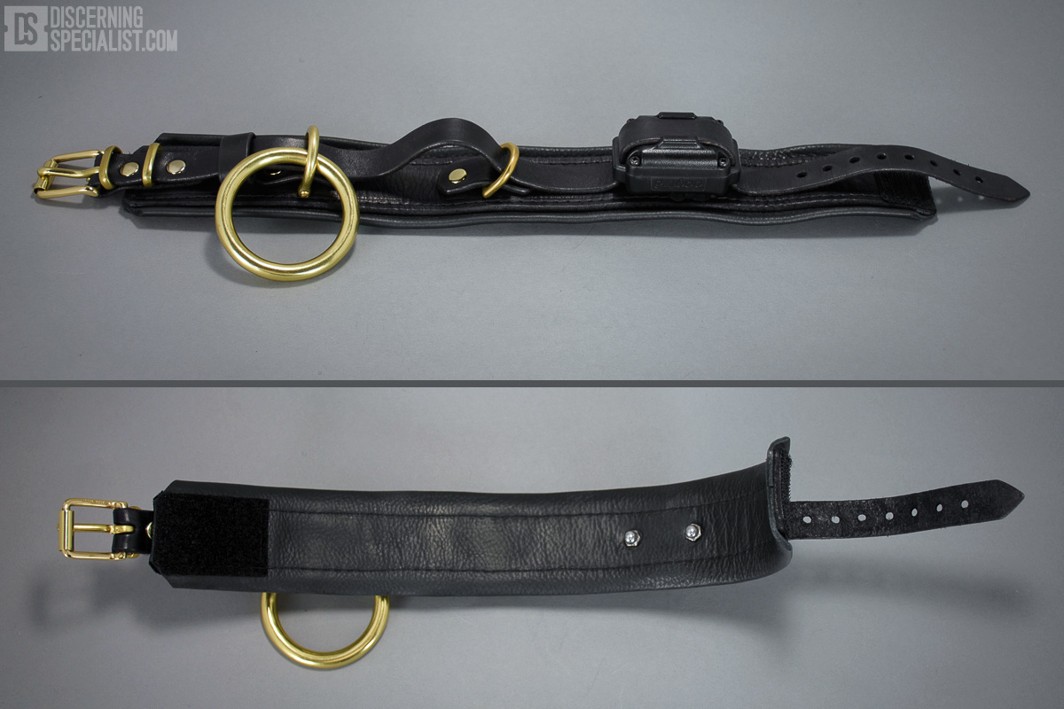 Although I was happy how the Dogtra IQ-Plus turned out for play use, the included collar wasn't up to my leather liking standards so I took the time to make my own BDSM collar platform for it.
