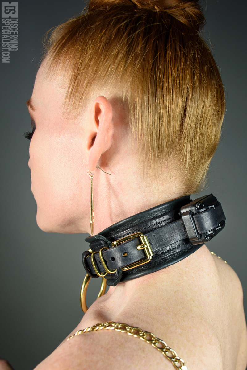 When in a collar setup I preferred having the shock unit on the back since when in the front it gets a bit in the way for attachment functionality or say oral duty. When on the sides the shock unit is generally out of the way, but the shock it delivers becomes much more TENS style causing muscles to flex rather than just giving static shock feeling. Thus with D-ring needing to be in the front and shock unit in the back, about the only place for the buckle was on the side. For the other side I left the small D-ring on the side to keep strap alignment. The end result is a little asymmetric visually, but I haven't had any issues with it functionality wise. I had one suggestion for a 2 buckle version, but have concerns it would then just add more bulk and likely some production issues where being able to rotate the strap on 1 rivet point is critical in the current workflow. Nonetheless, possible if one didn't care about rivets ending up on the worn side.